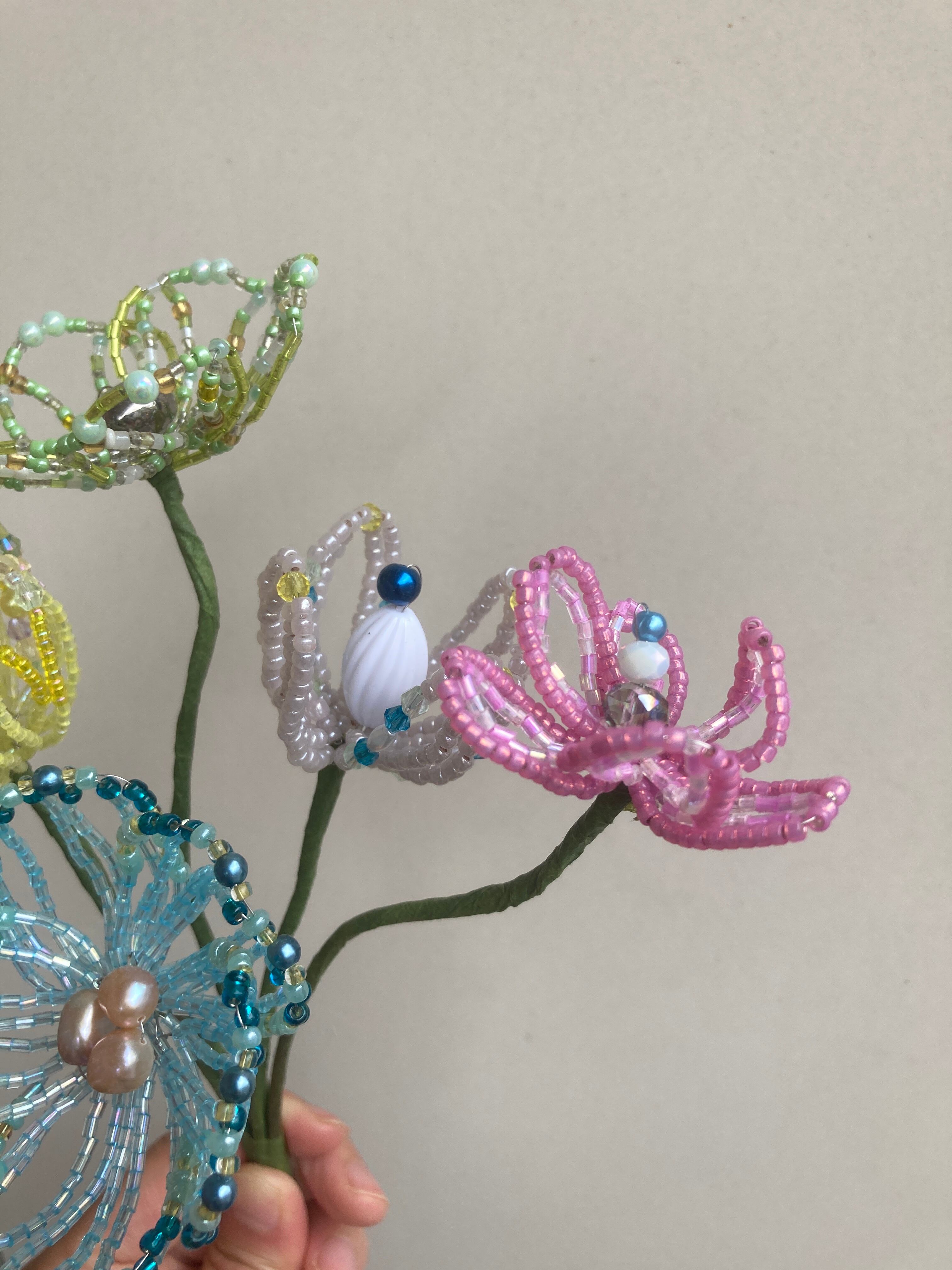 夏のはじまりにぴったりの、フレッシュな色をぎゅっと詰めたビーズフラワーです。