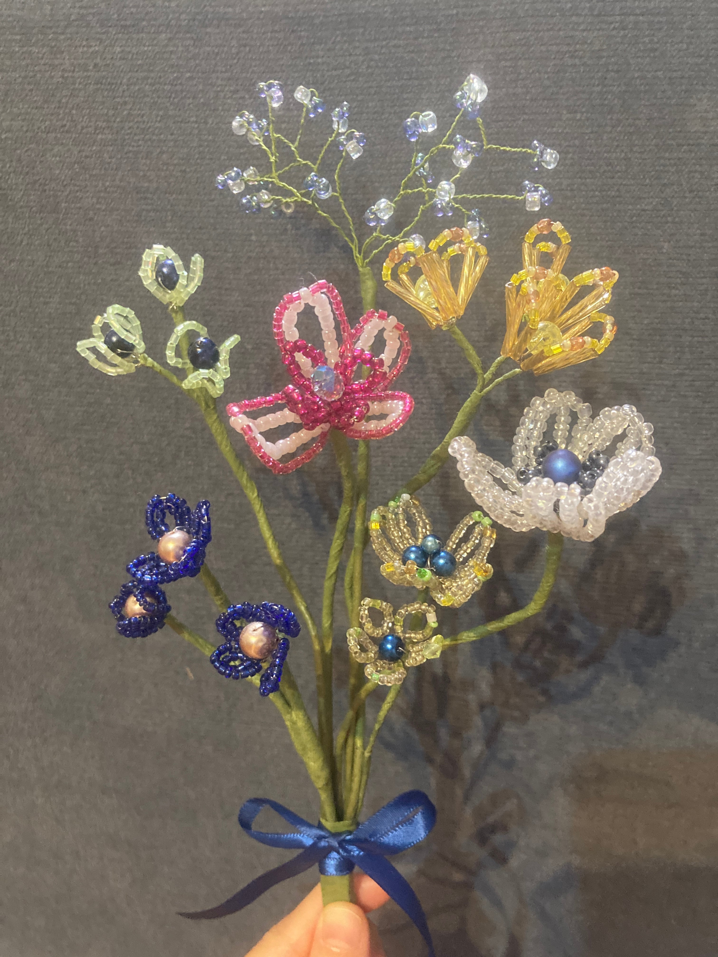 一つ一つ手作業で制作しているため、形やサイズに若干の個体差がございます。また、ビーズの色味や配置が写真と異なる場合がございます。ハンドメイドならではの風合いとしてご理解ください。
