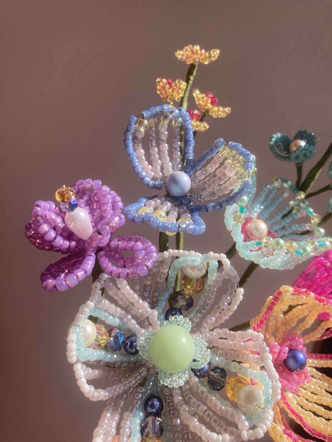 一つ一つ手作業で制作しているため、形やサイズに若干の個体差がございます。また、ビーズの色味や配置が写真と異なる場合がございます。ハンドメイドならではの風合いとしてご理解ください。