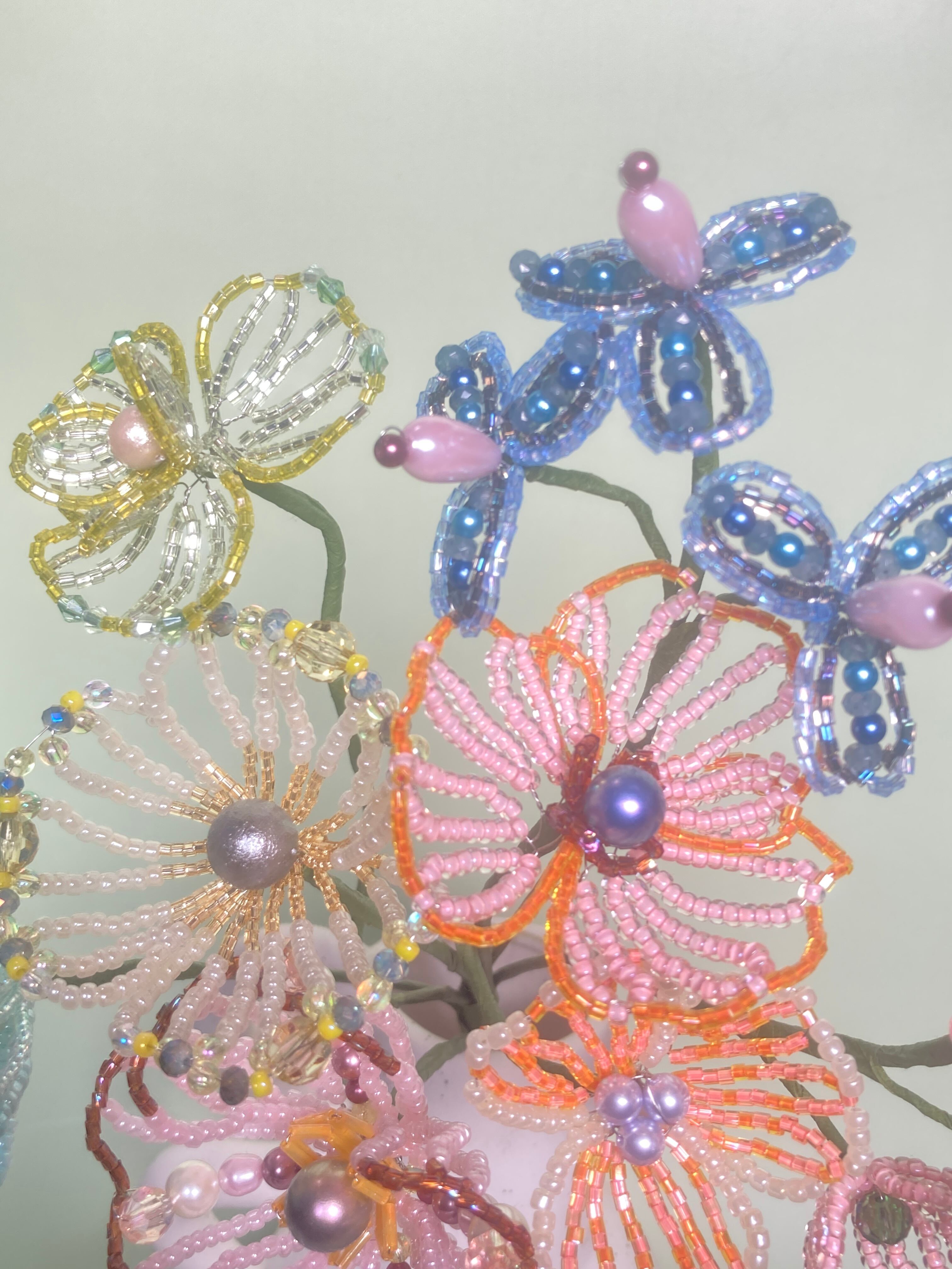 一つ一つ手作業で制作しているため、形やサイズに若干の個体差がございます。また、ビーズの色味や配置が写真と異なる場合がございます。ハンドメイドならではの風合いとしてご理解ください。