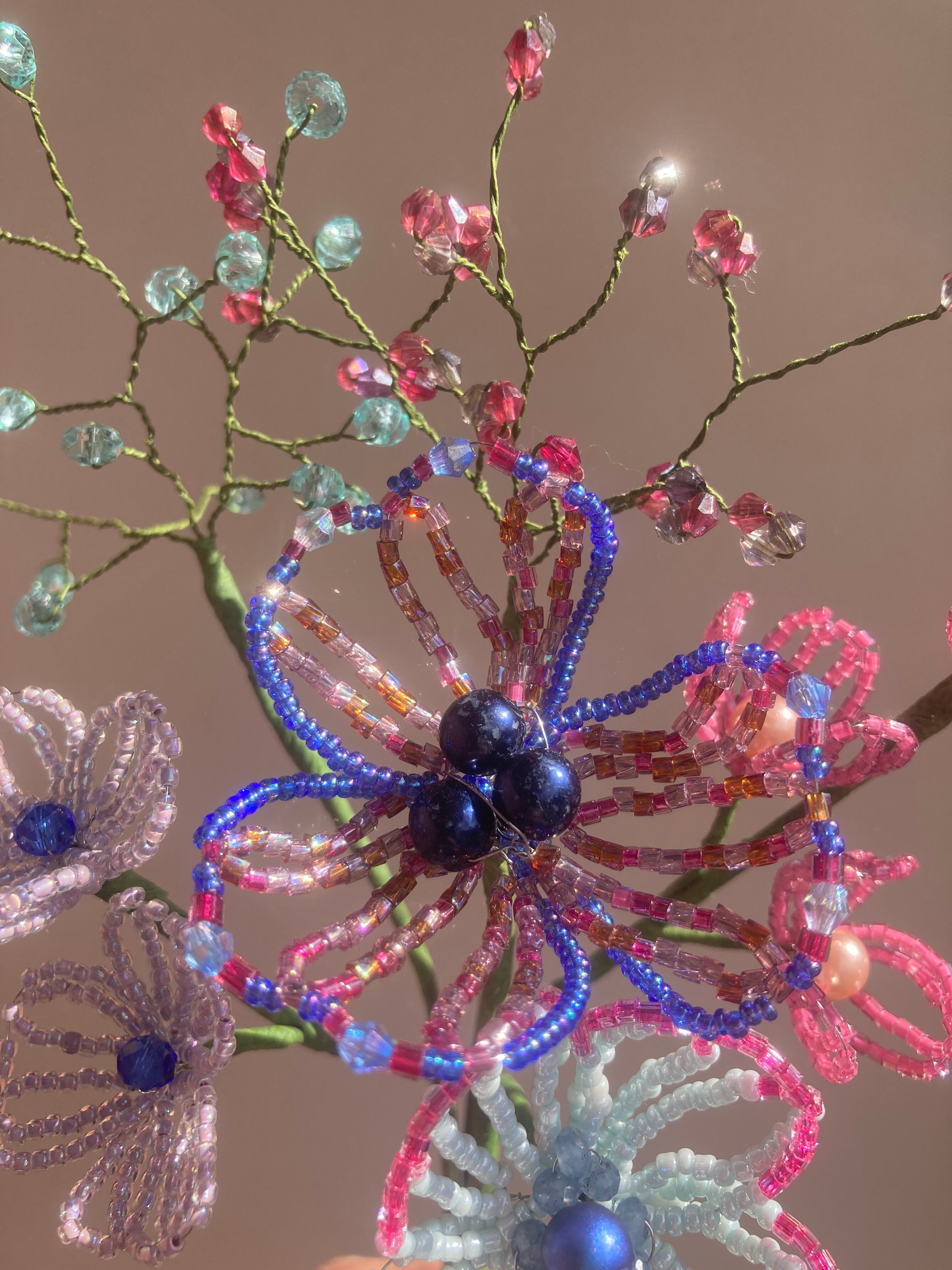 一つ一つ手作業で制作しているため、形やサイズに若干の個体差がございます。また、ビーズの色味や配置が写真と異なる場合がございます。ハンドメイドならではの風合いとしてご理解ください。