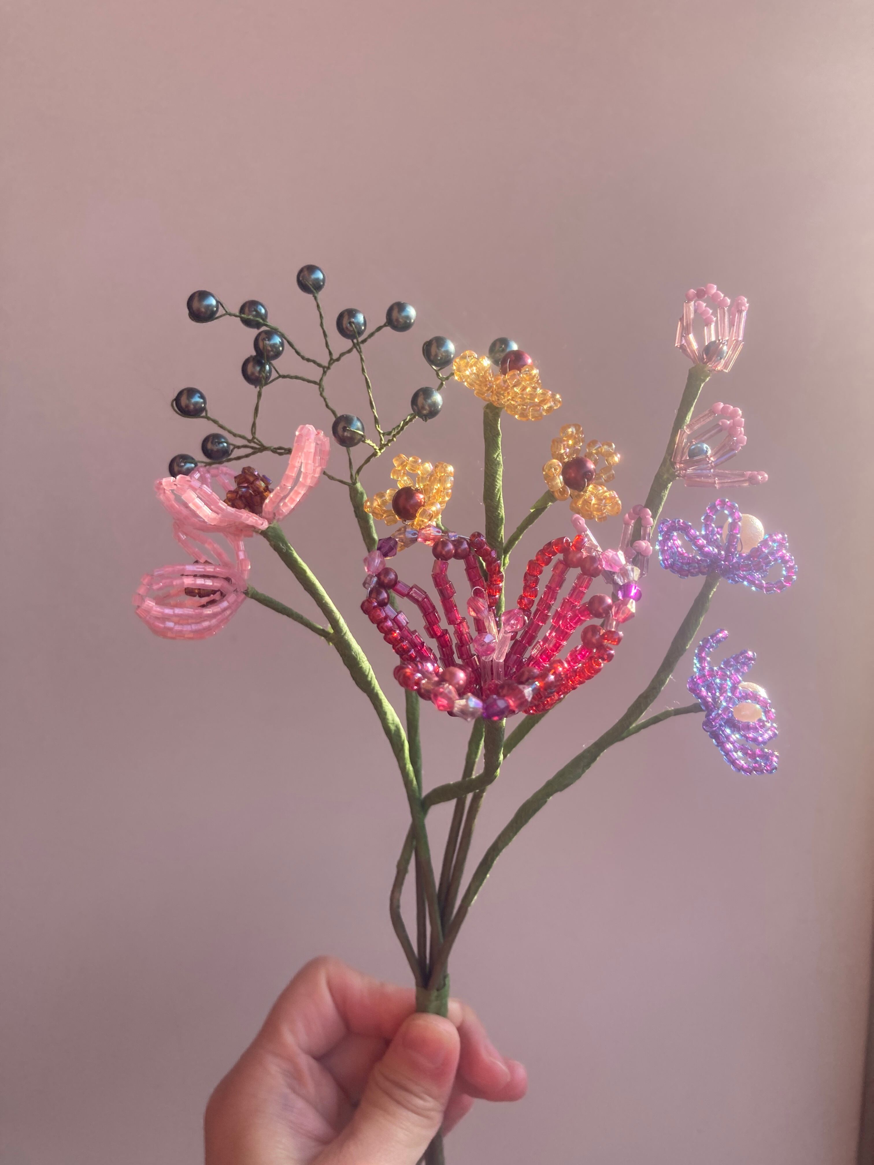 一つ一つ手作業で制作しているため、形やサイズに若干の個体差がございます。また、ビーズの色味や配置が写真と異なる場合がございます。ハンドメイドならではの風合いとしてご理解ください。