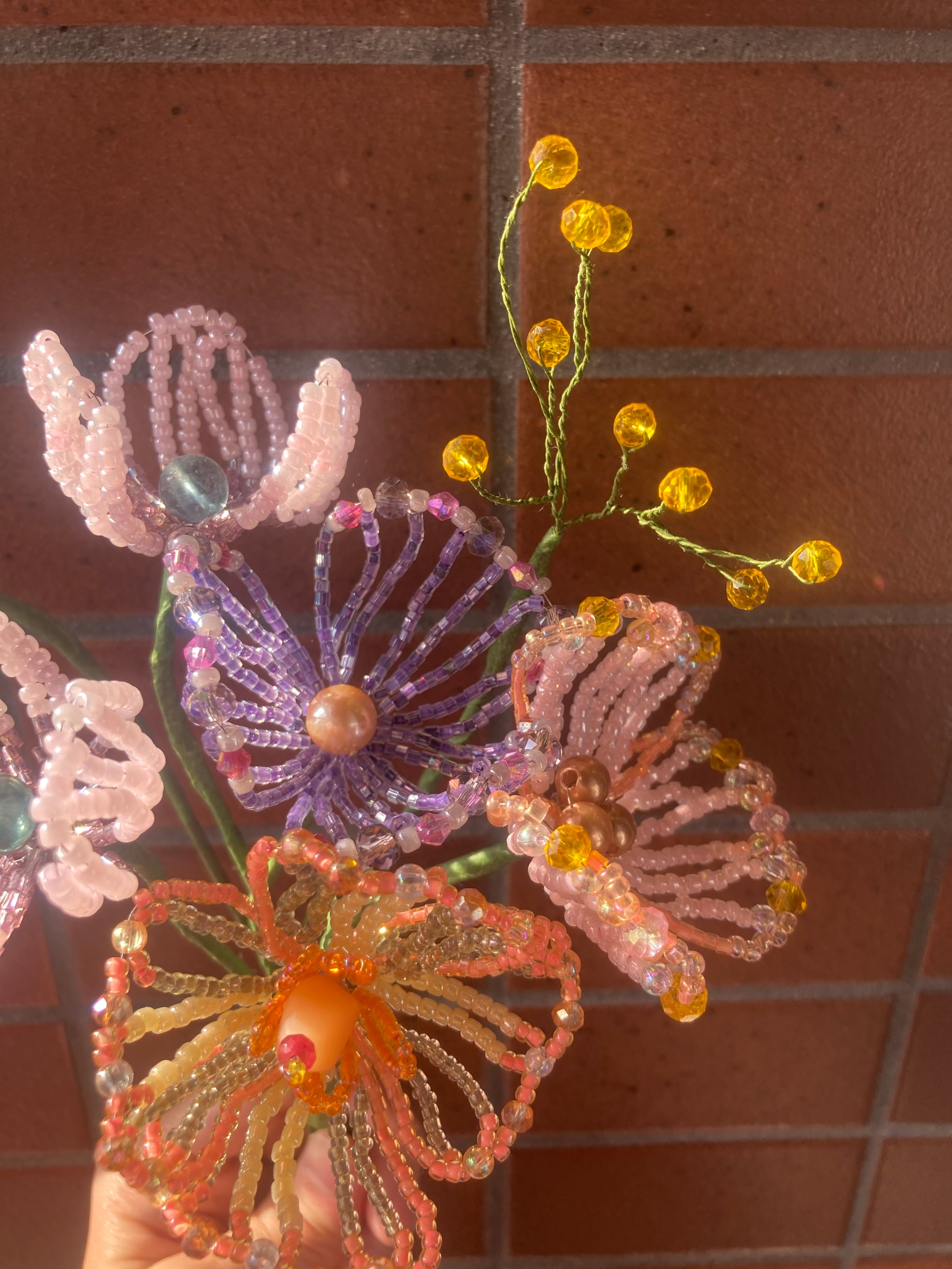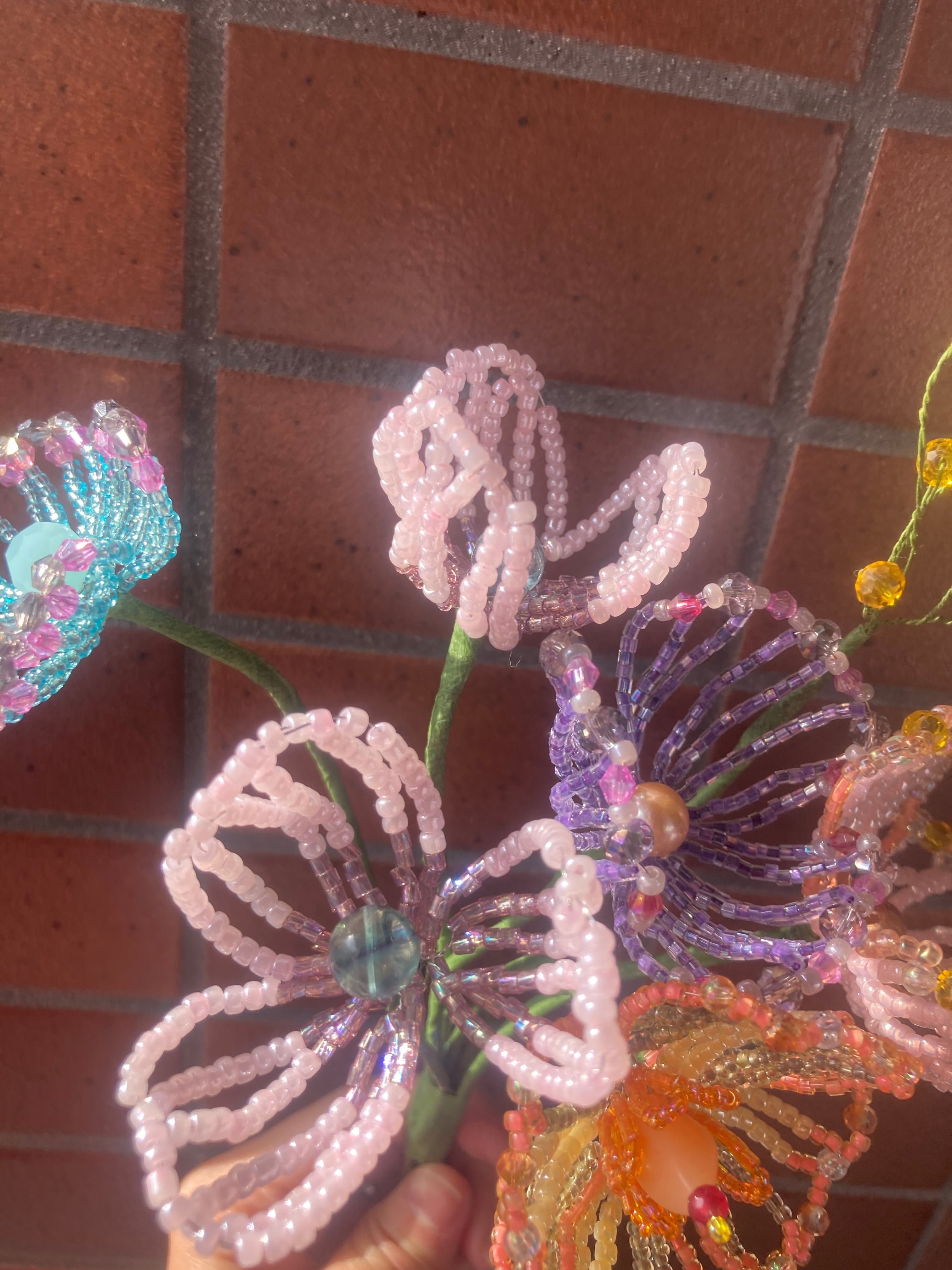 一つ一つ手作業で制作しているため、形やサイズに若干の個体差がございます。また、ビーズの色味や配置が写真と異なる場合がございます。ハンドメイドならではの風合いとしてご理解ください。