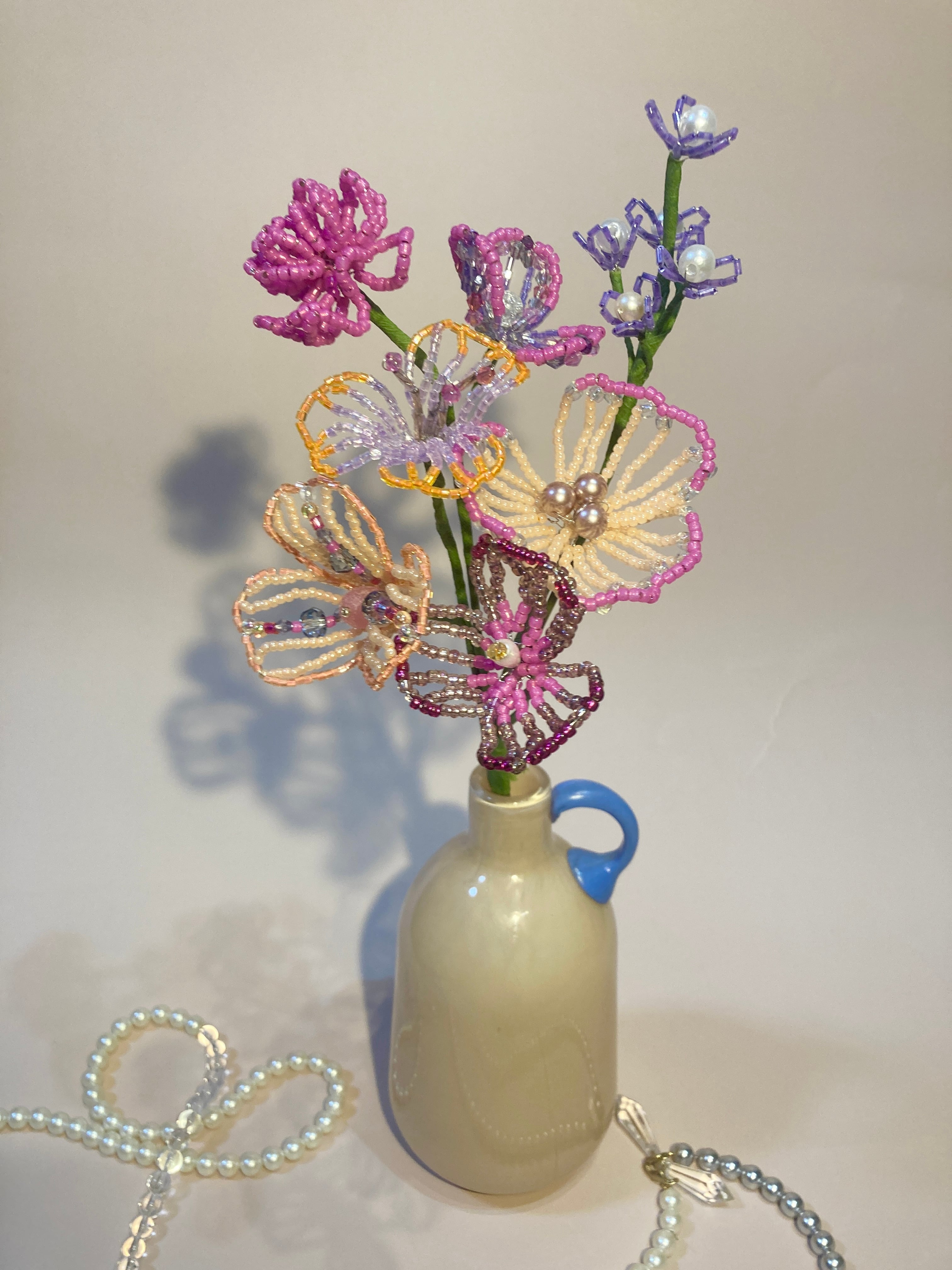 一つ一つ手作業で制作しているため、形やサイズに若干の個体差がございます。また、ビーズの色味や配置が写真と異なる場合がございます。ハンドメイドならではの風合いとしてご理解ください。