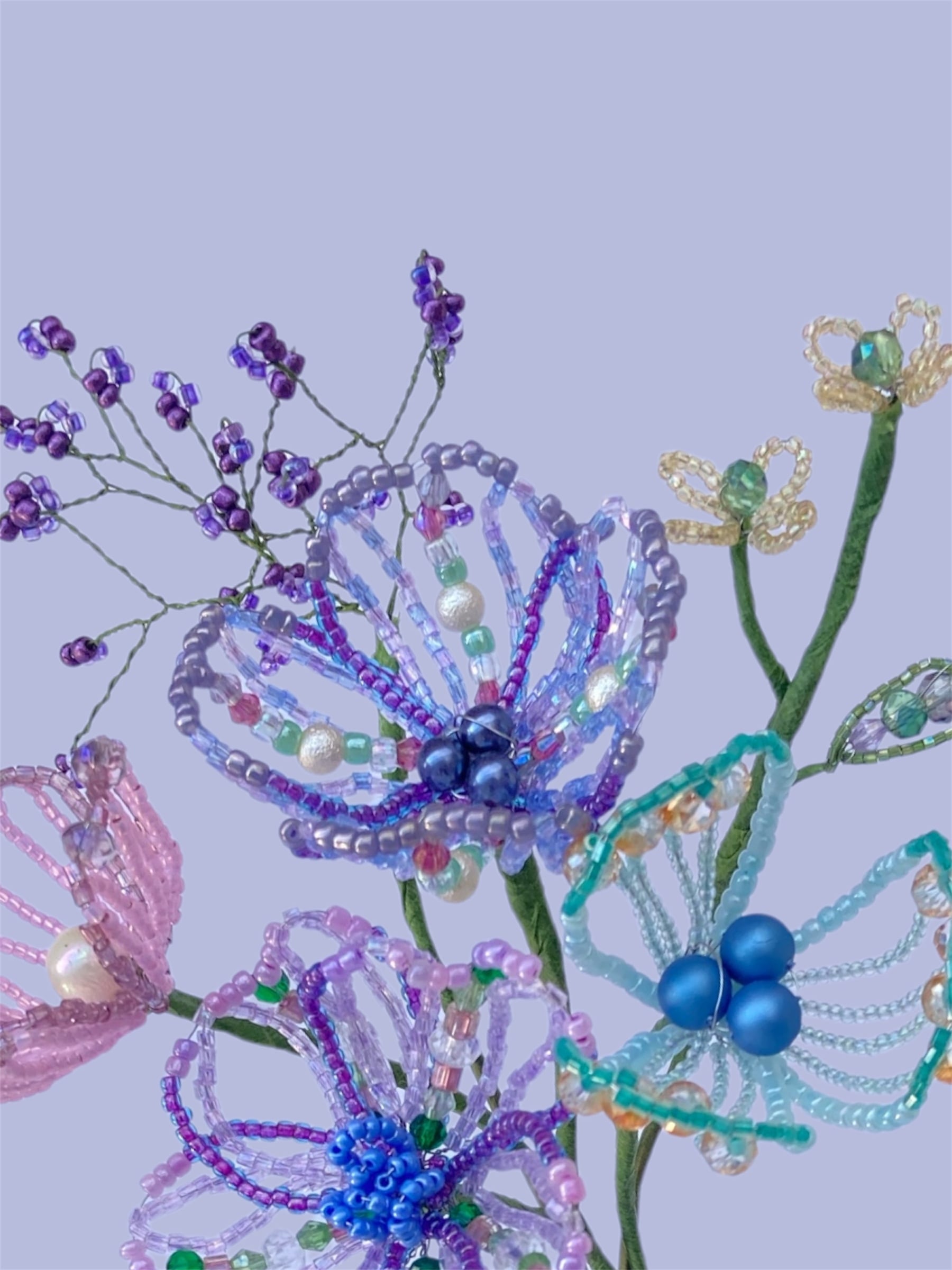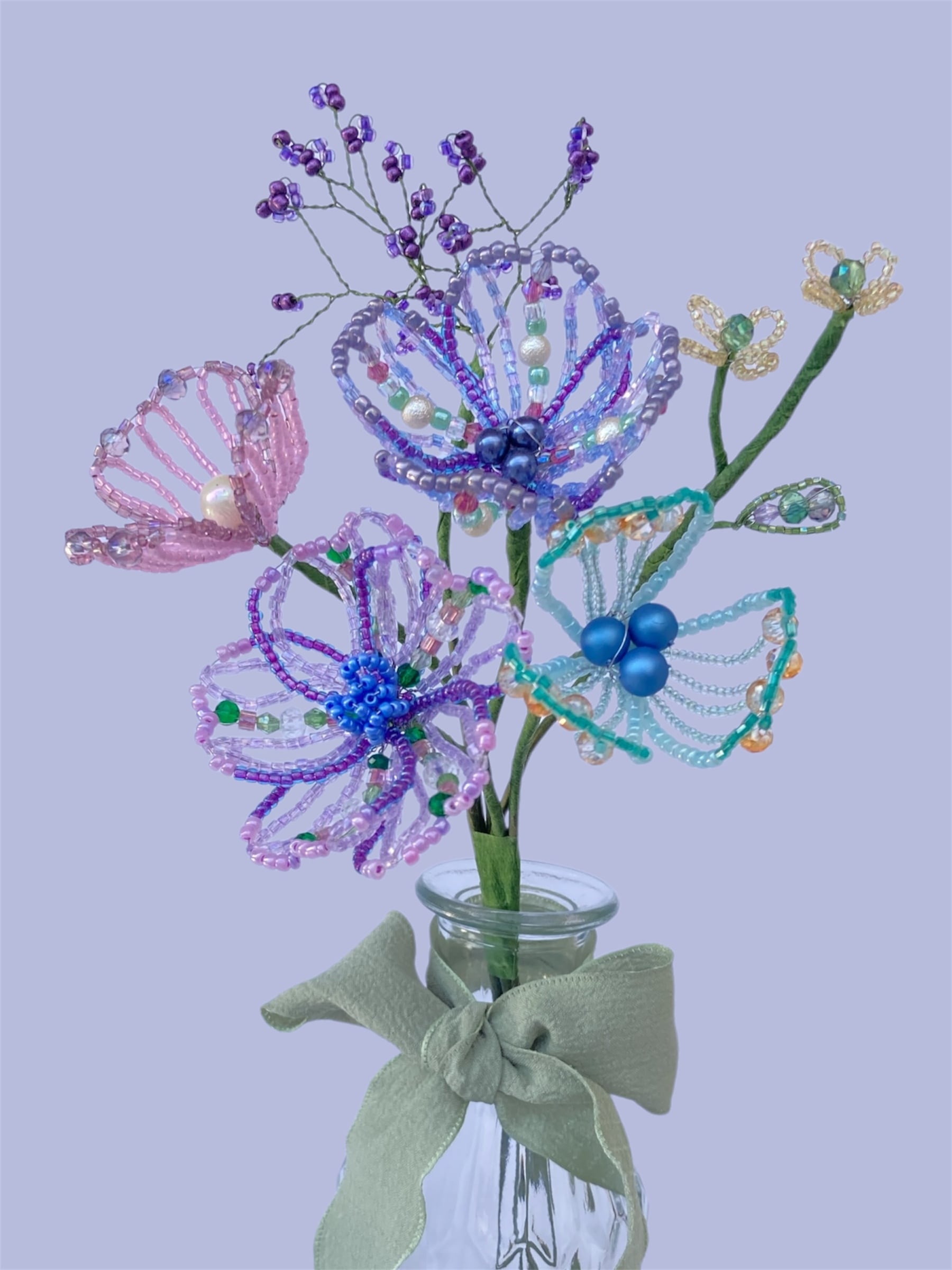 一つ一つ手作業で制作しているため、形やサイズに若干の個体差がございます。また、ビーズの色味や配置が写真と異なる場合がございます。ハンドメイドならではの風合いとしてご理解ください。
